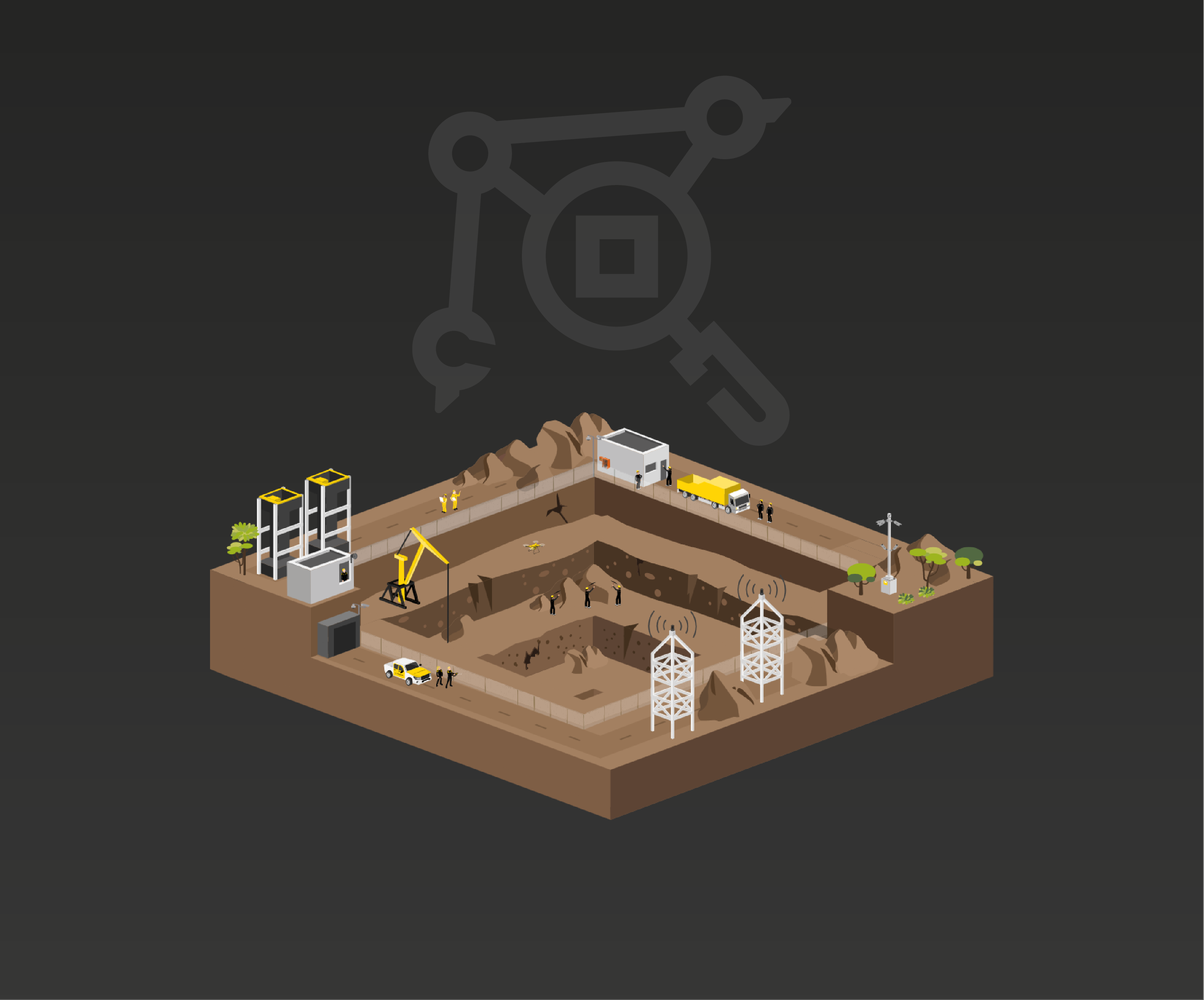 Durante la extracción, instalamos un robusto control de accesos y gestión de flotas para garantizar que solo personal autorizado ingrese a áreas críticas o de alto riesgo (socavones o tajos abiertos). La tecnología de videoanalítica con IA nos permite detectar comportamientos inseguros, previniendo accidentes laborales. Asimismo, desplegamos soluciones de protección perimetral inteligente y vigilancia contra el robo de mineral o de insumos críticos como explosivos y combustible.